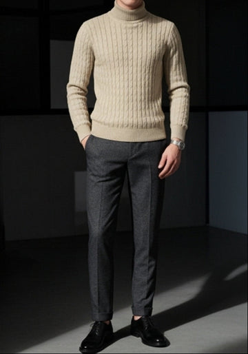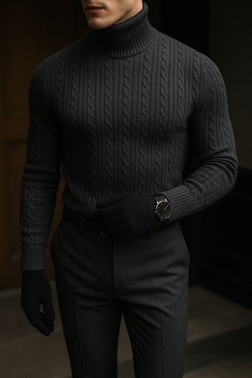 2025 New Men's High Neck Sweater, Solid Color Pullover, Knitted, Warm, Casual Turtleneck, Sweatwear, Woolen, Men's Winter Outdoor Tops
