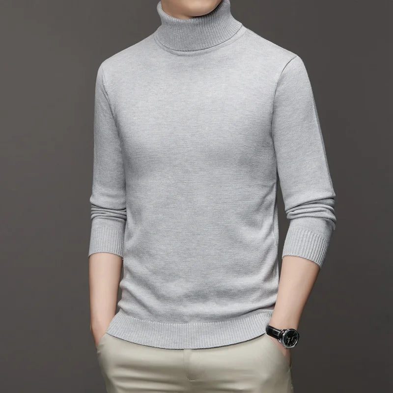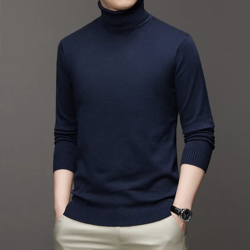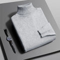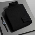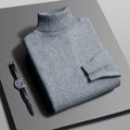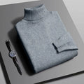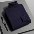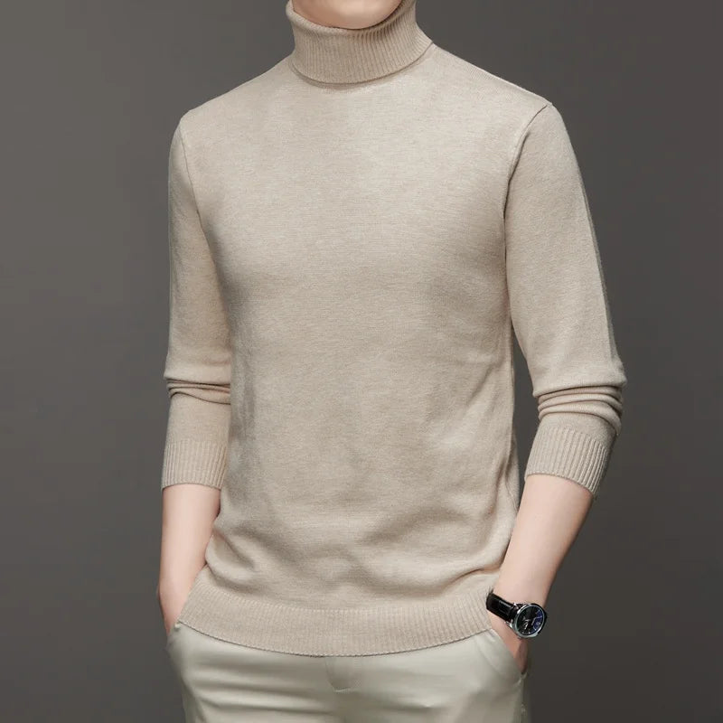 Pair it with a Tailored Light Beige Trousers, a Black Leather Strap Watch with Minimalist Dial and Navy Blue Merino Wool Turtleneck Sweater. A perfect balance of luxury, comfort, and modern refinement, this ensemble is designed for the man who appreciates understated elegance and impeccable tailoring.